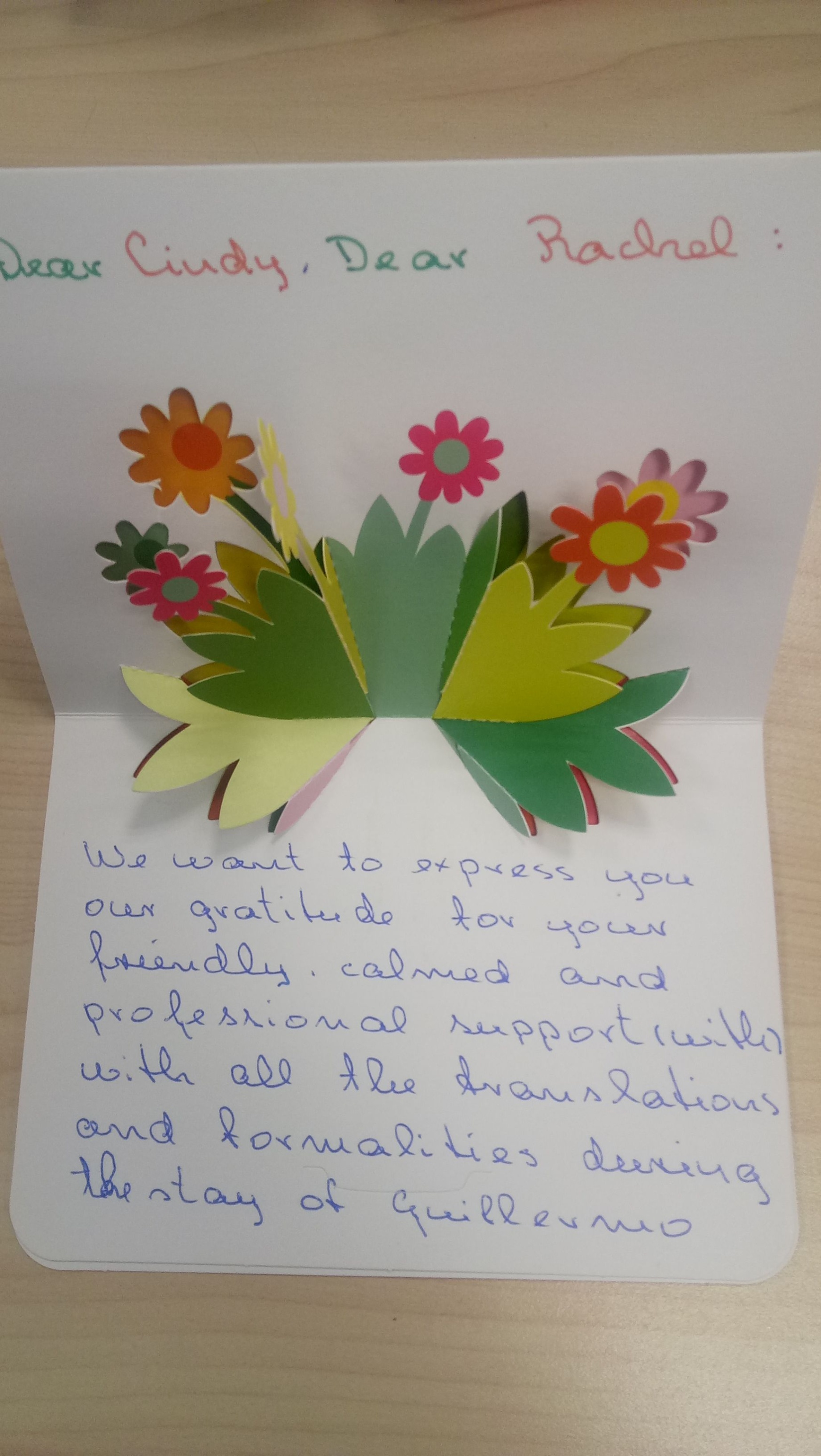 Hernandez给特需医疗部和国际交流部工作人员的感谢信